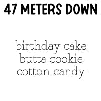 | 47 meters down : birthday cake • butta cookie • cotton candy |