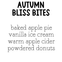 | autumn bliss bites : baked apple pie • vanilla ice cream • apple cider • powdered donuts |