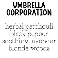 | umbrella corporation : patchouli • black pepper • lavender • blonde woods |