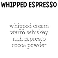 | whipped espresso : whipped cream • warm whiskey • rich espresso • cocoa powder |