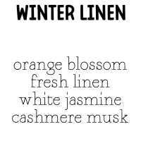 | winter linen : orange blossom • fresh linen • jasmine • cashmere musk |